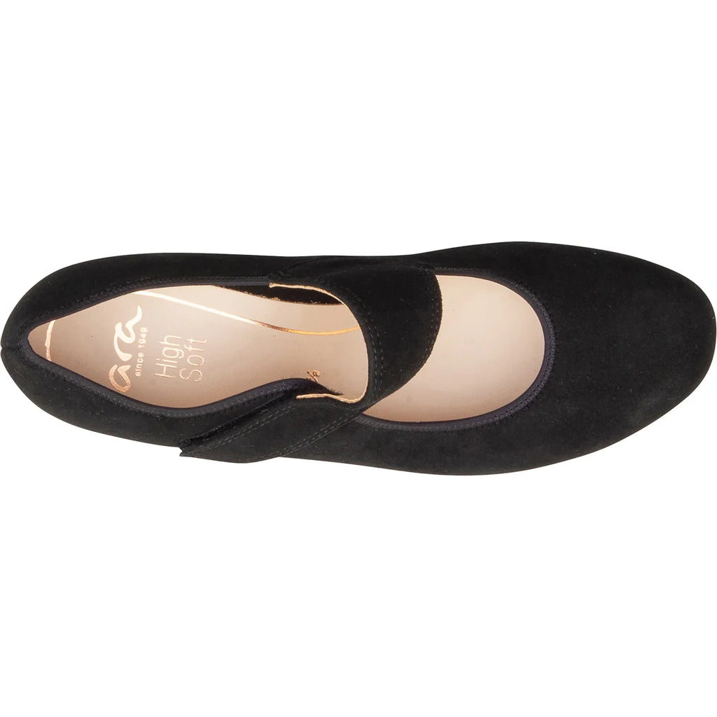 Flattering asymmetrical Mary Jane pump in rich premium black suede by ara combines simplicity and fashion for a look that can be dressed up or down. The Calico 2 by ara has an elasticized topline for a custom fit as well as added comfort. This style utilizes HighSoft technology. HighSoft is the combination of super smooth soft-leather, a highly flexible outer sole, a supple and a padded inner sole which results in the indescribably comfortable walking experience by ara.